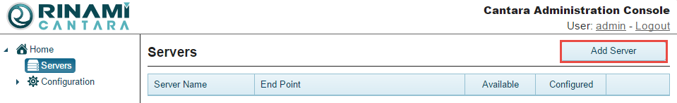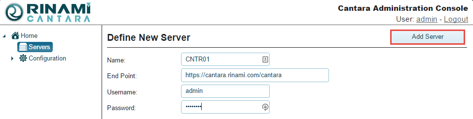 You can manage multiple Cantara Access Servers from a single administration console instance. To add a server please follow these steps: