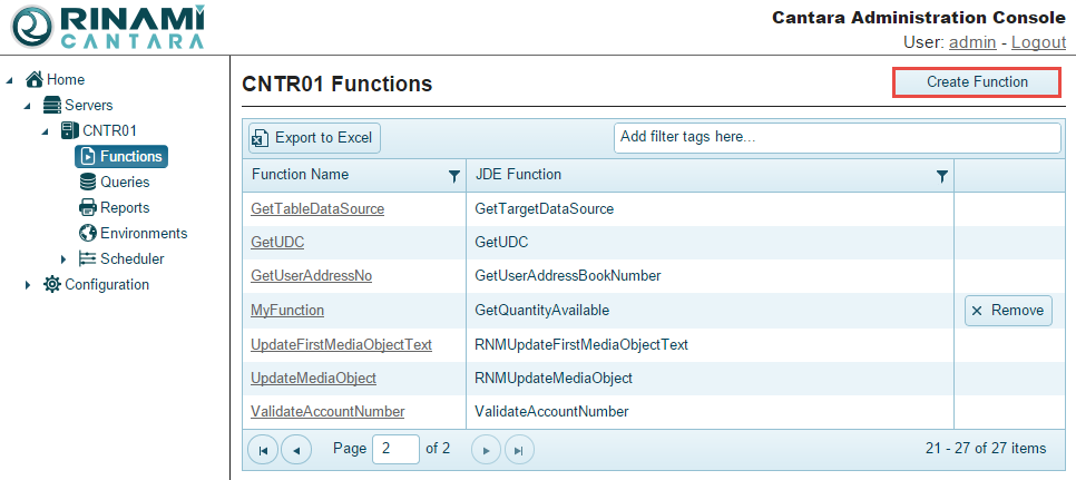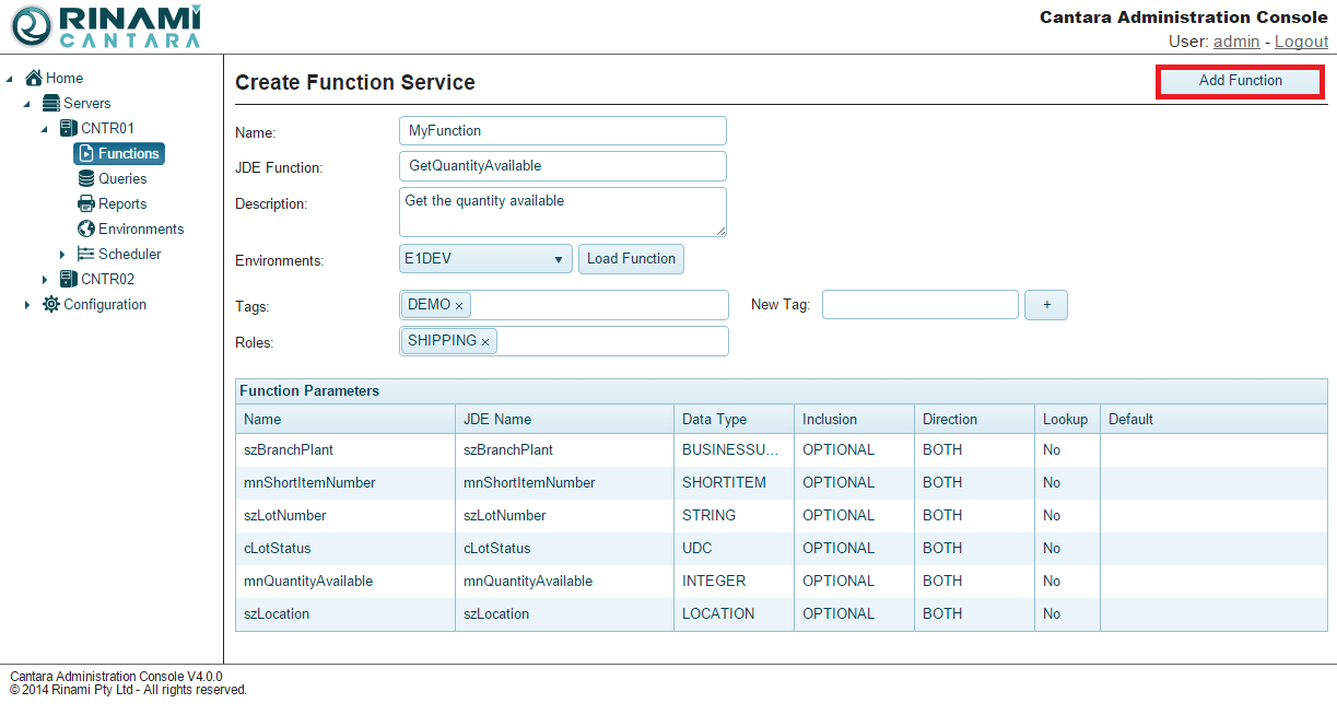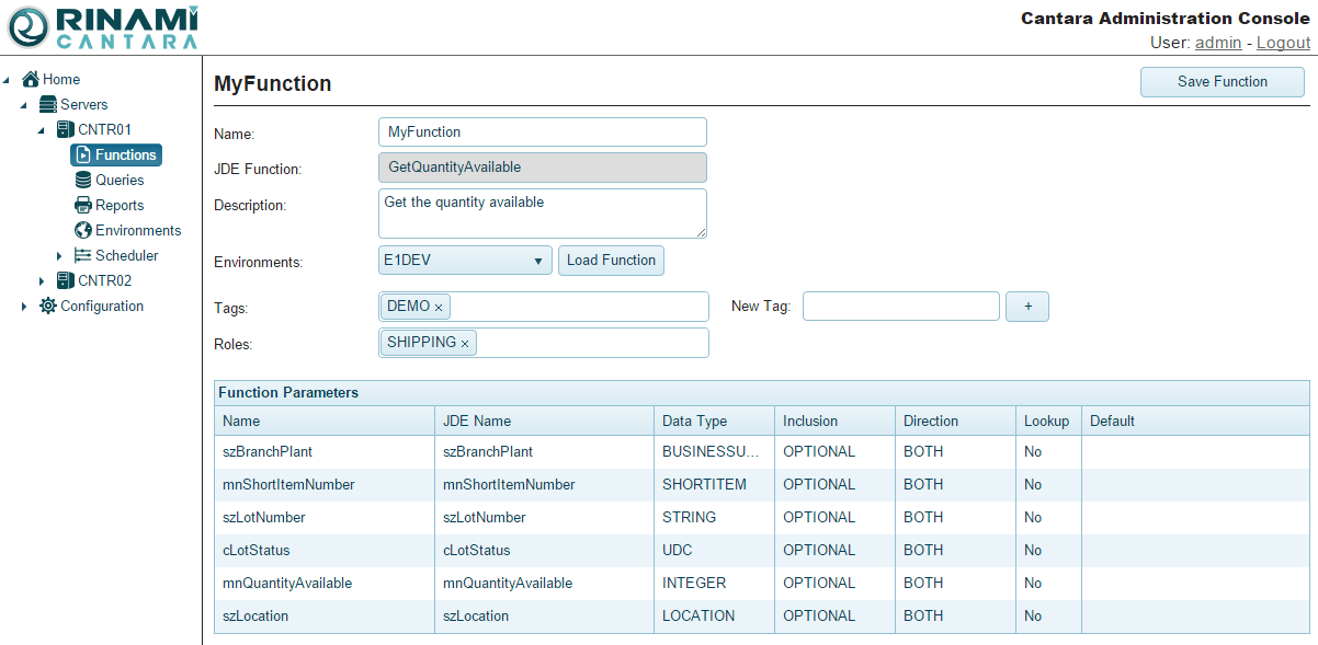 - Click the Add Function button. The function definition is saved and added to the list of functions in the navigation panel.