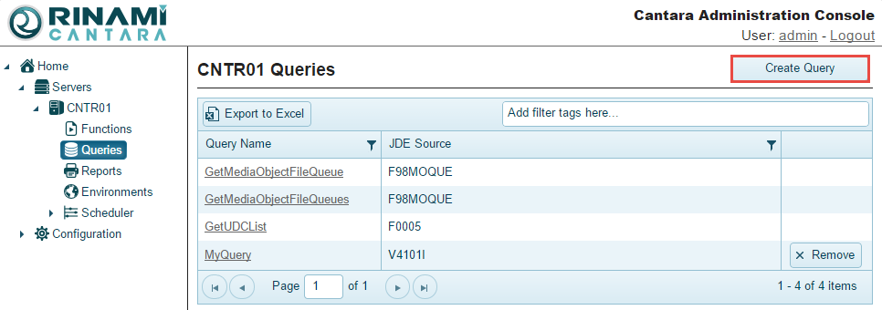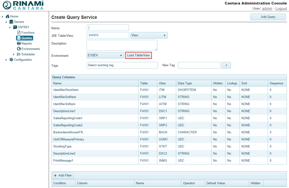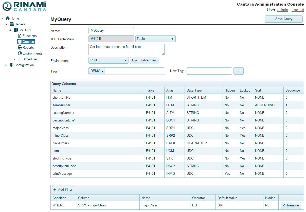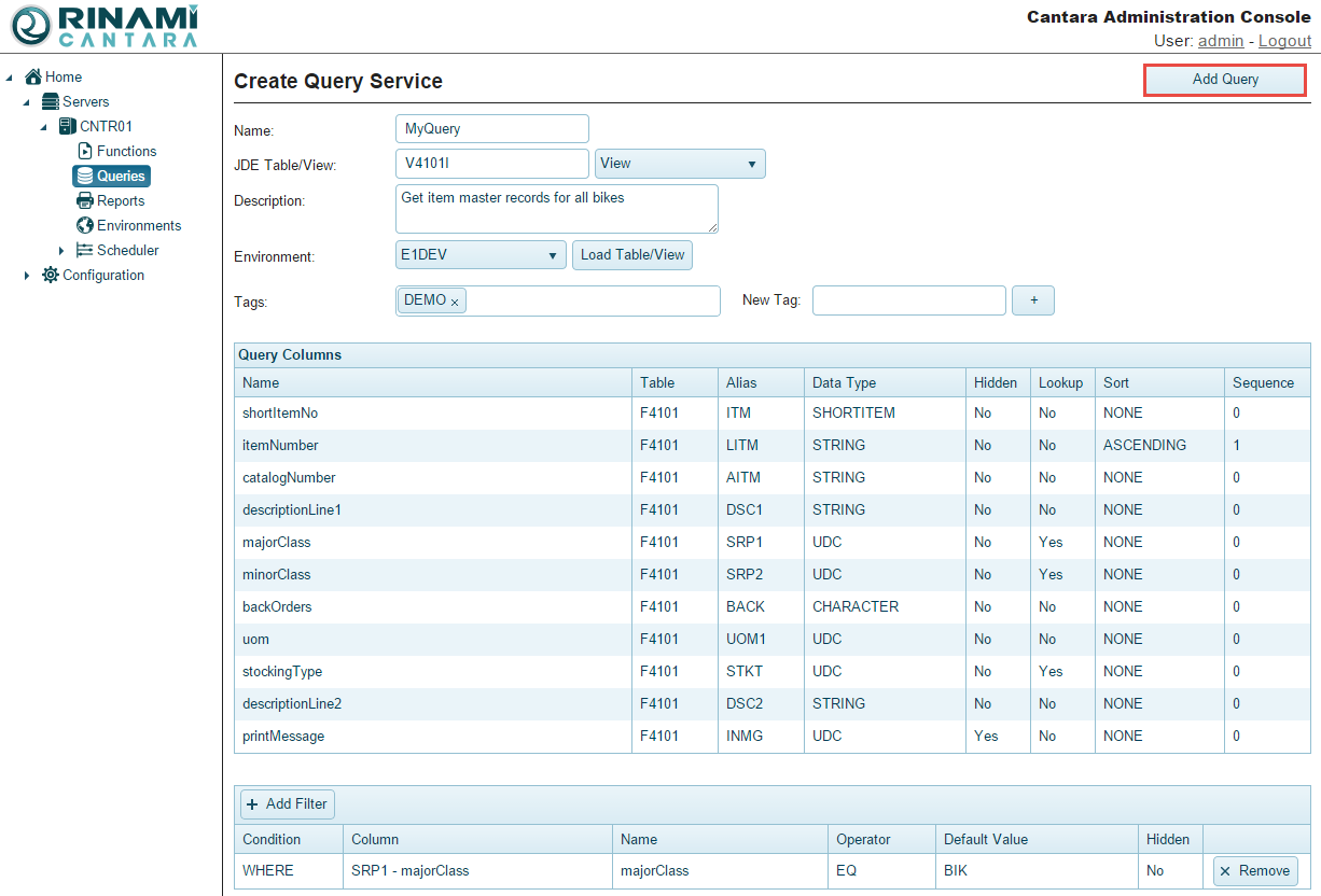If you need to create multiple queries definitions for the same JD Edwards table or business view, you can change the name of the previous query you created and click the Save Query button. Repeat this process for each additional definition you want to add.