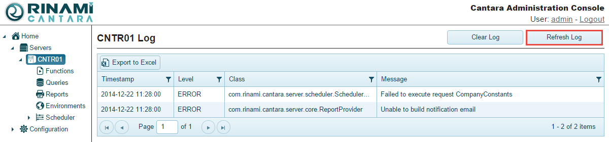 You can reload the log contents by pushing the Refresh Log button in the top right corner of the page