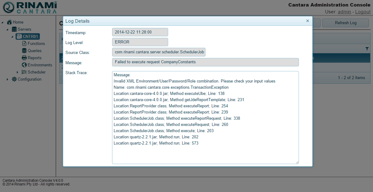 In the case of errors you can view further details on the issue by double clicking on the log record to open the details window.