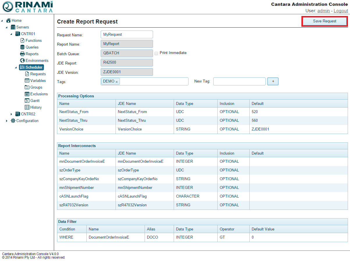 - Click the Save Request button.