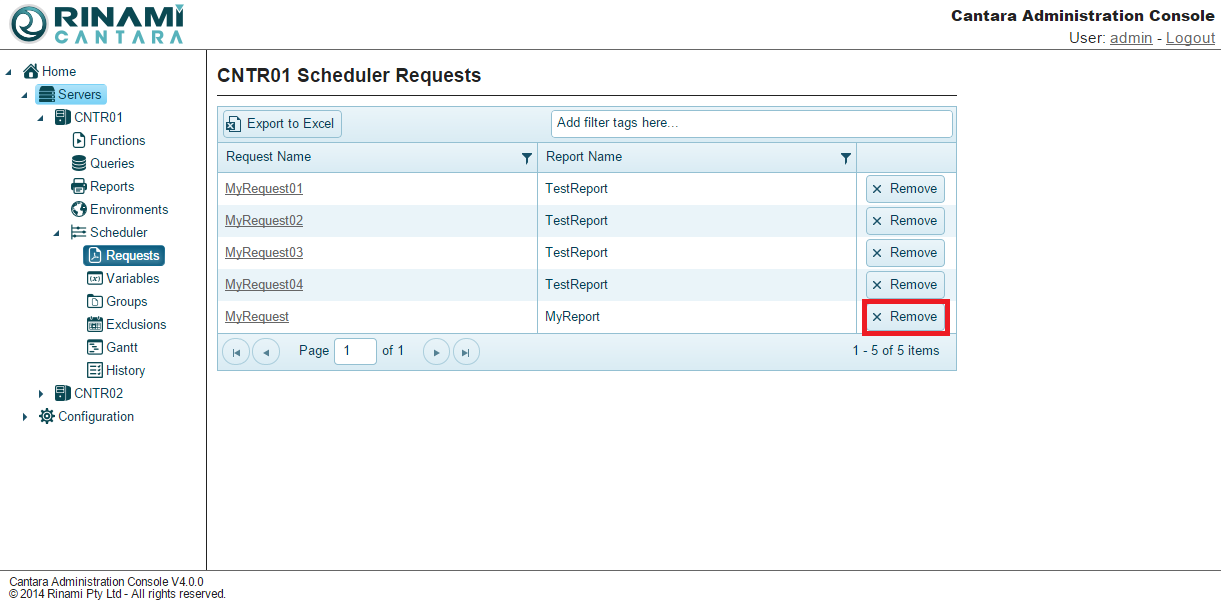 - Click the Remove button for the request you want to delete. The request is removed from the list.