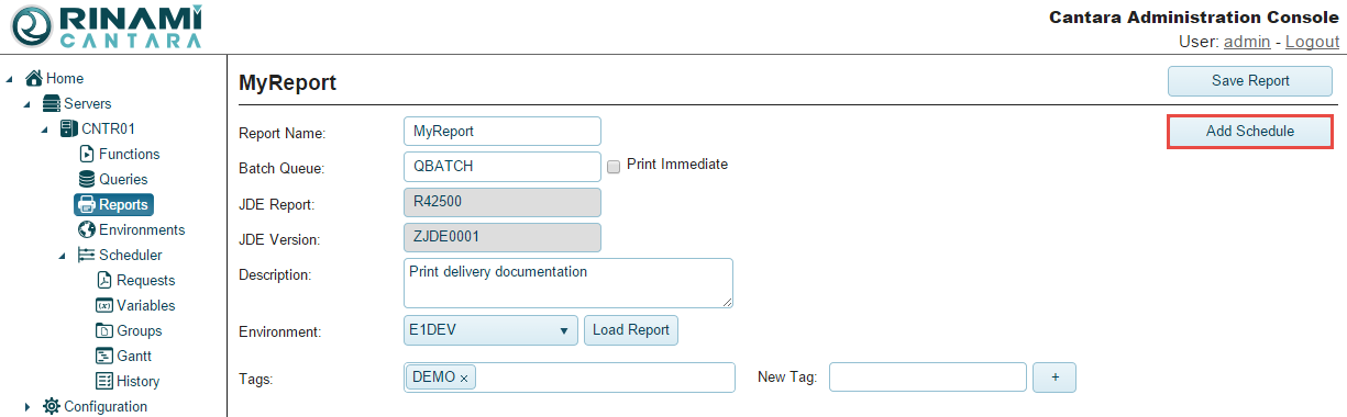 - Select the report for which you want to add a schedule.