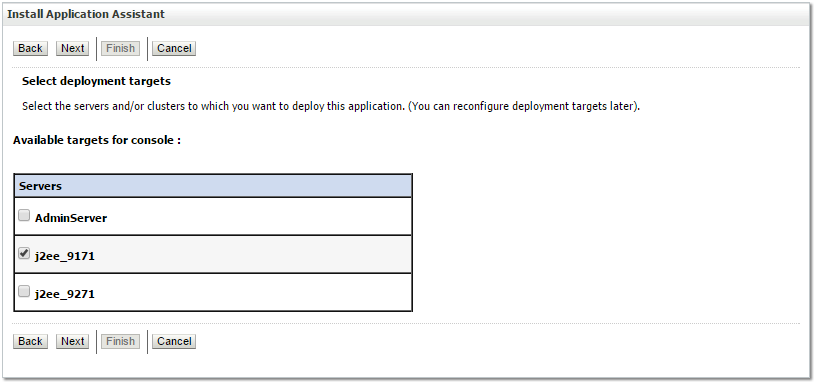 Select the WebLogic Server Instance that you want to deploy to and click Next.