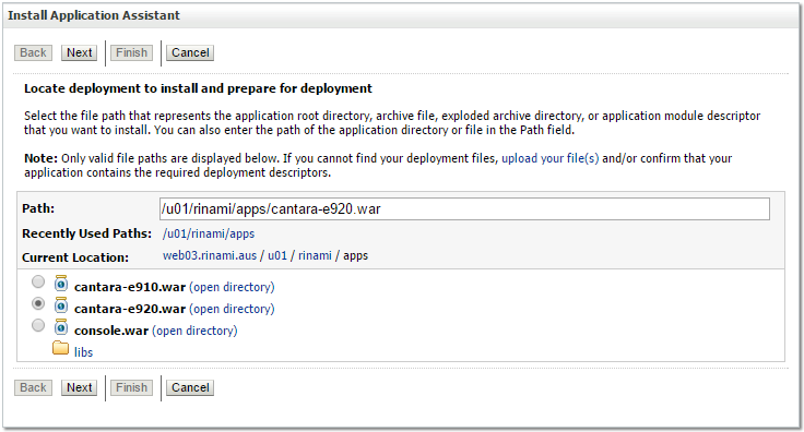 Browse to the Cantara Access Server application install path as shown in the following image: