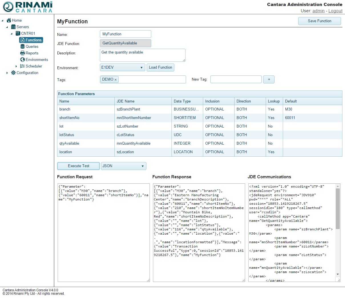 You can use the Cantara Adminstration Console as a debug tool to test that a function is working as expected.
