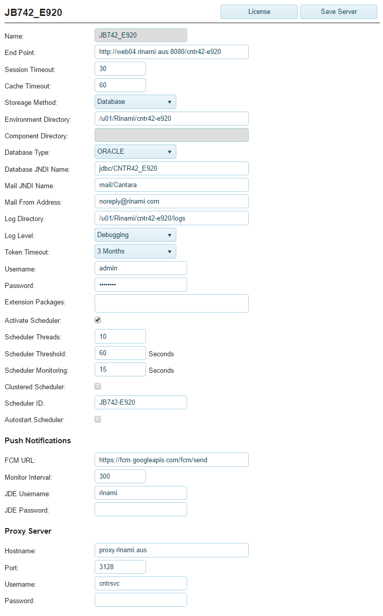 - Monitor Interval: How often should Cantara poll JDE for new push notifications in seconds