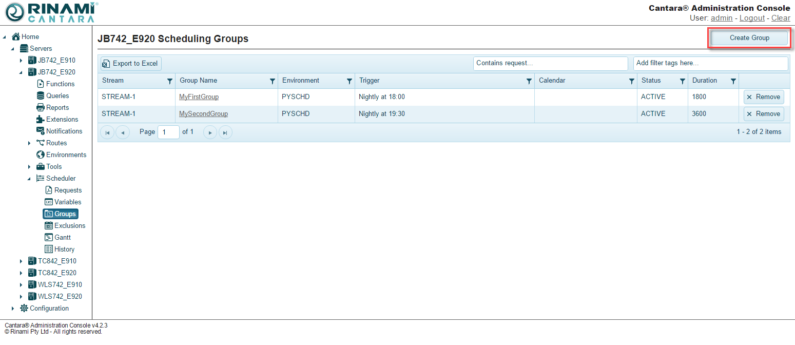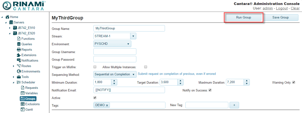 - From the edit group screen click the Run Group button, this will submit the group to the schedular regardless of its trigger settings.