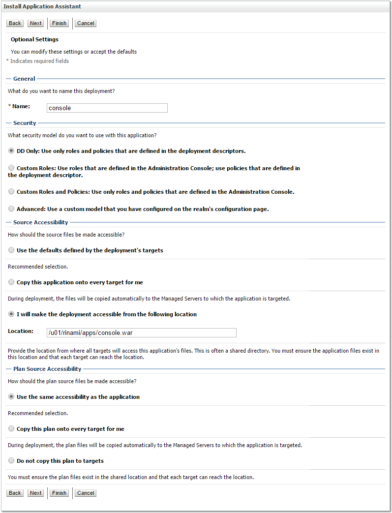 - Accept the default for the Install this deployment as an application option, and click Next.