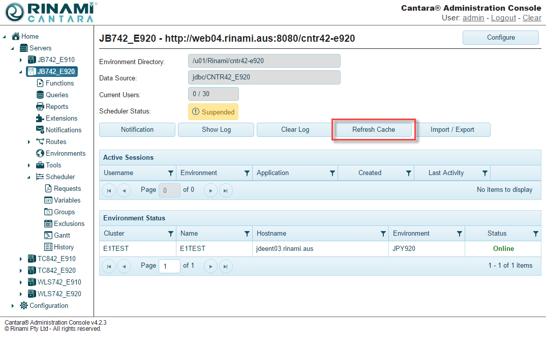 Edits and deletions you make to a single server in a clustered environment are not immediately pushed to the other servers. If you require the changes to be immediate you must use the Refresh Cache feature to reflect these updates on the other servers.