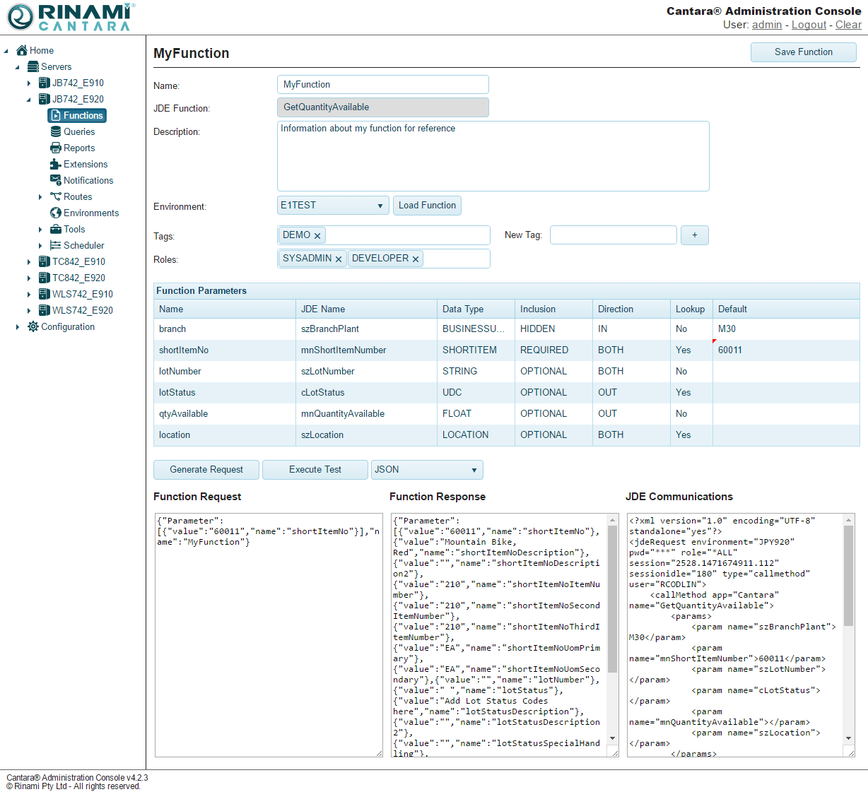 You can use the Cantara Adminstration Console as a debug tool to test that a function is working as expected.