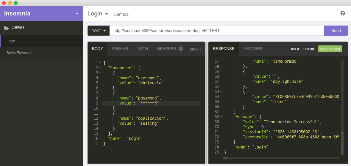 As we need a Session, we need to start with a login, then we are able to execute our Extension.