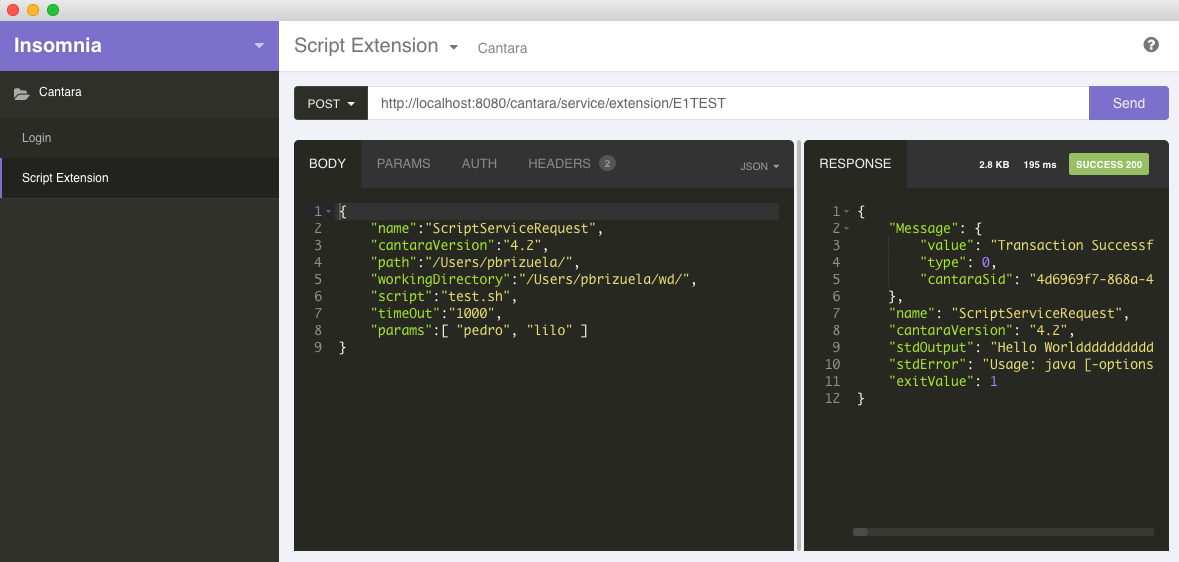 Once your extension is available to be executed, Insomnia ( a Chrome Extension) is a useful tool that help us to execute our services easily and quickly.