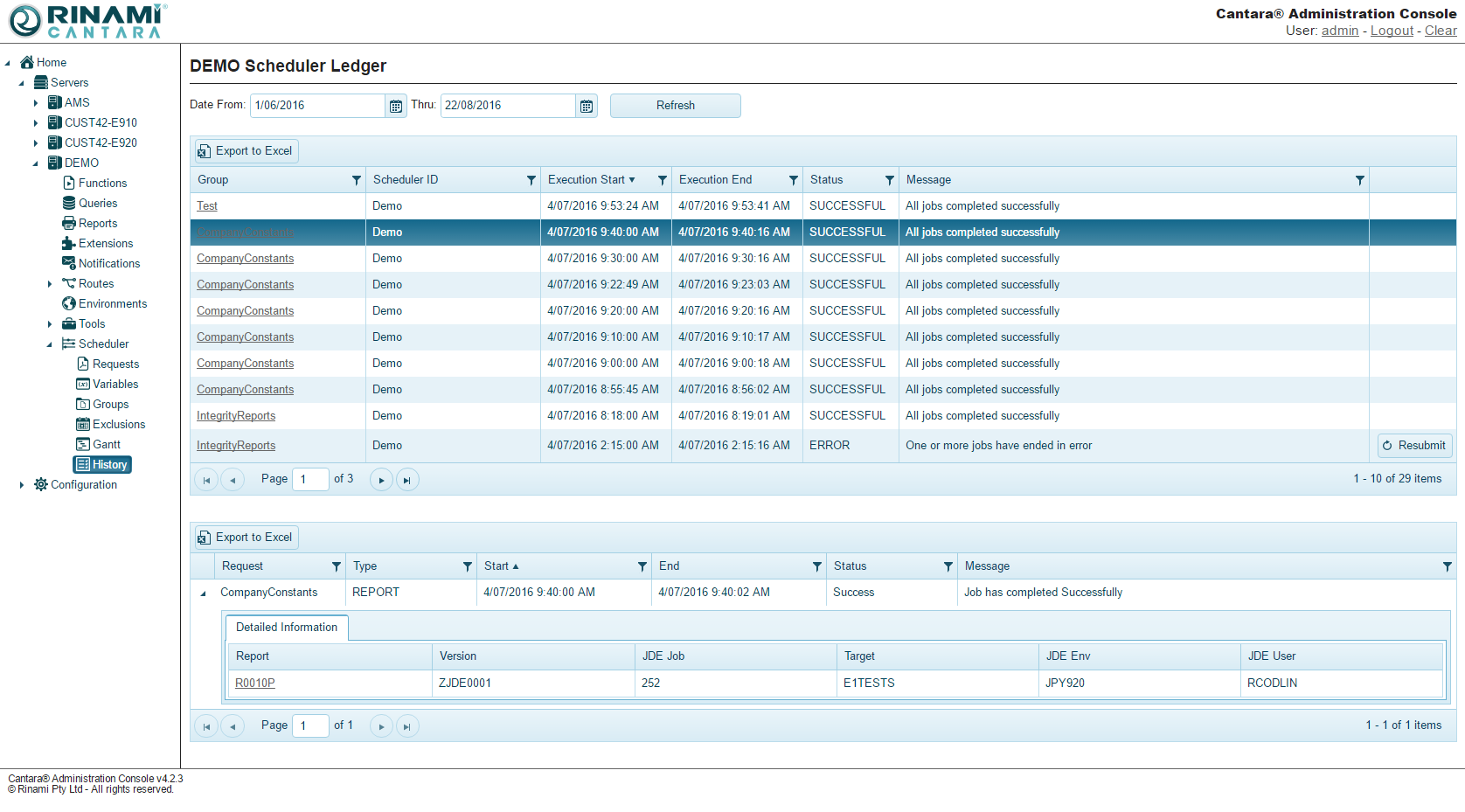 You can view of history of the jobs that have been submitted to the JD Edwards system.