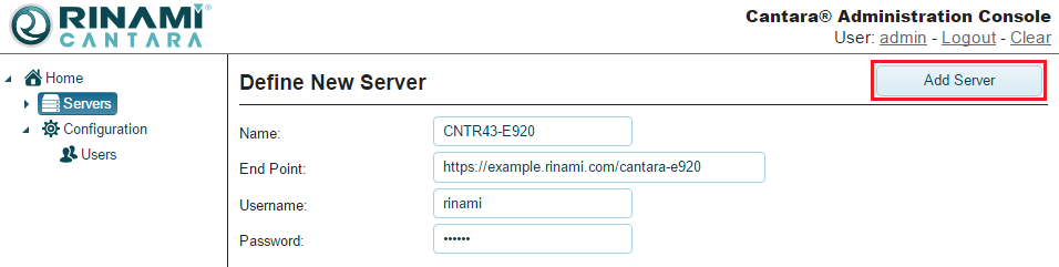 You can manage multiple Cantara Access Servers from a single administration console instance. To add a server please follow these steps: