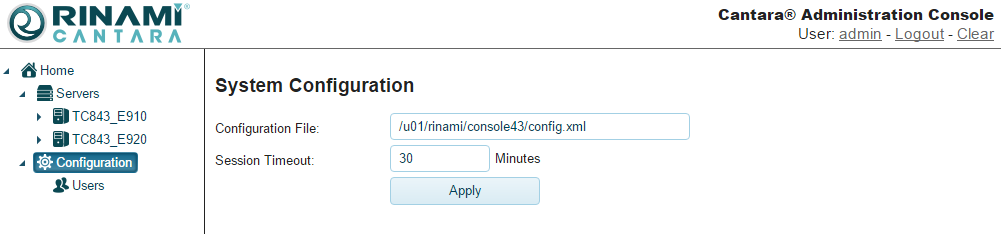 Configuration for the Cantara Administration Console is based on the definitions in the system configuration file. You can apply the configuration file to restore your existing settings or to specify new values.
