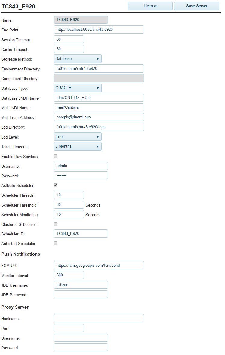 - Monitor Interval: How often should Cantara poll JDE for new push notifications in seconds