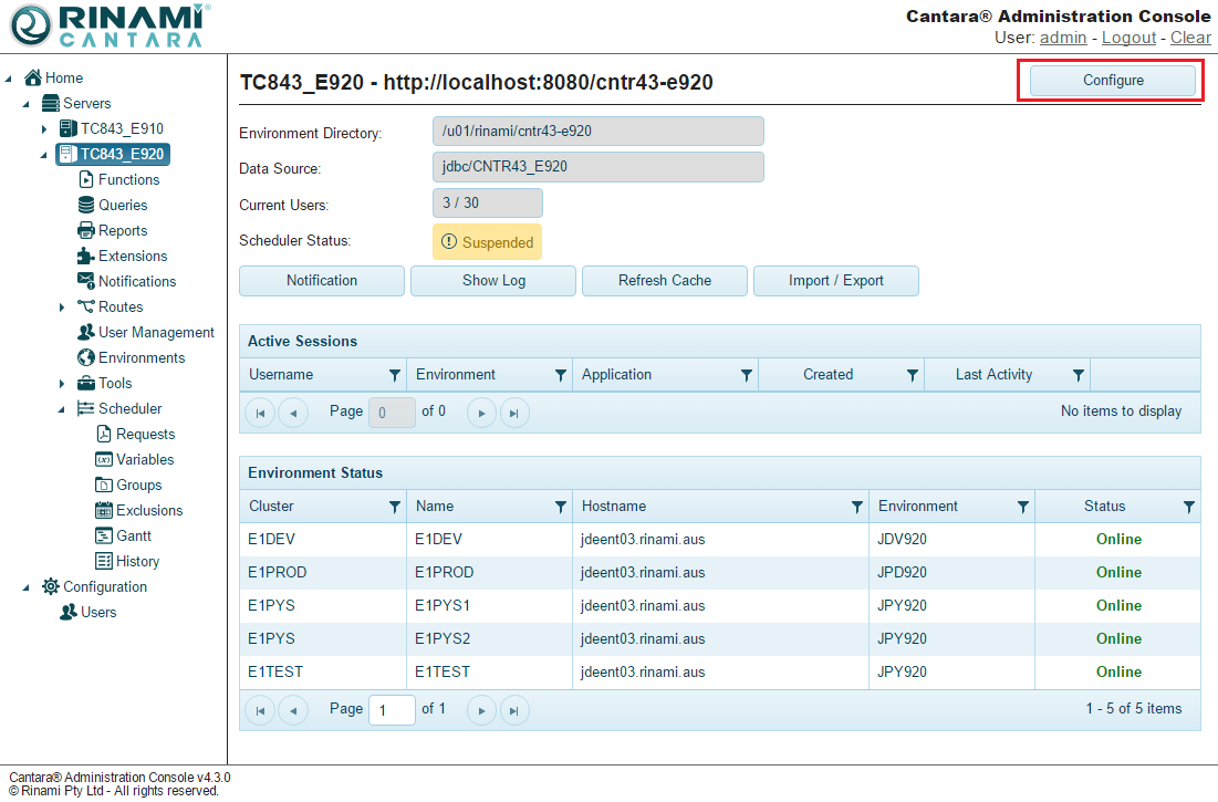 - AutoStart Scheduler (Enterprise Only): Checking this option causes the the scheduler to automatically start when your Cantara server starts. If you do not check this option, the scheduler remains in a SUSPENDED state. As a best practice, leave this option unchecked to make the scheduler only starts when the JD Edwards server is running.