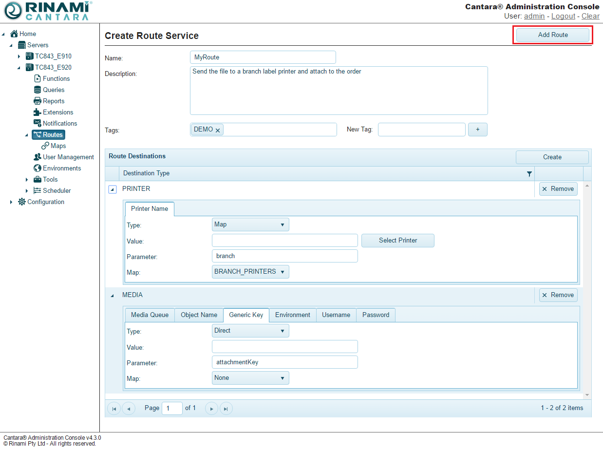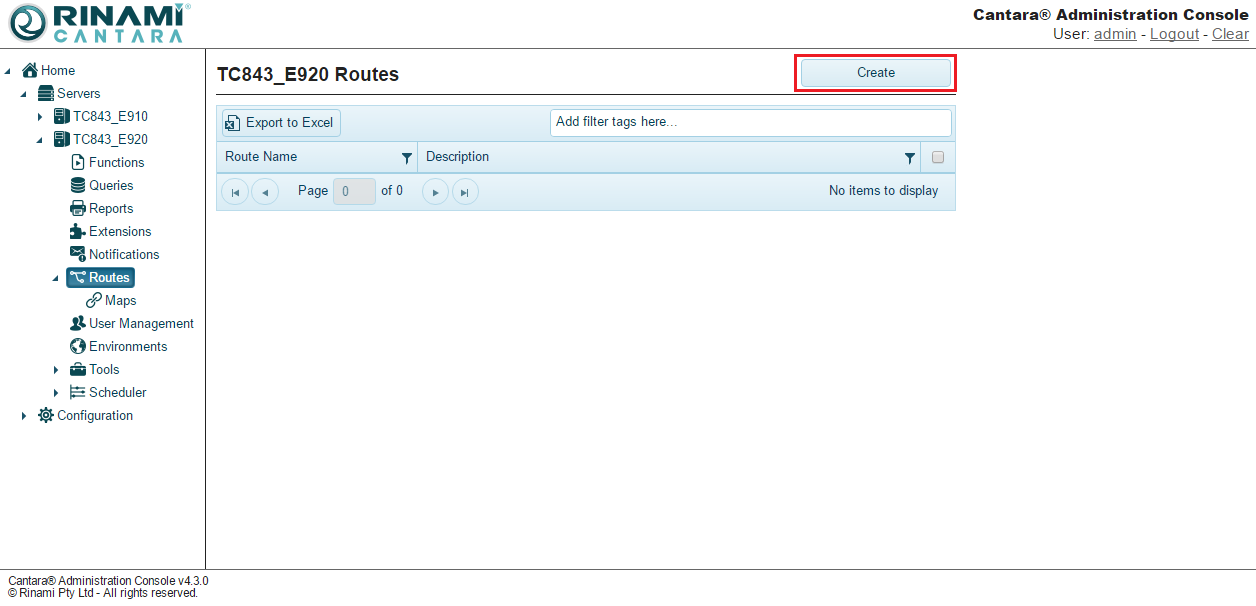 - Select the Routes node in the navigation panel. A list of available route services is displayed