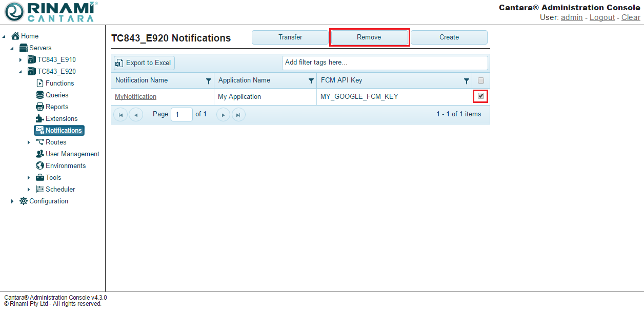 1. Select the Notifications node in the navigation panel. A list of all the notifications that are available in the Cantara Access Server are displayed.