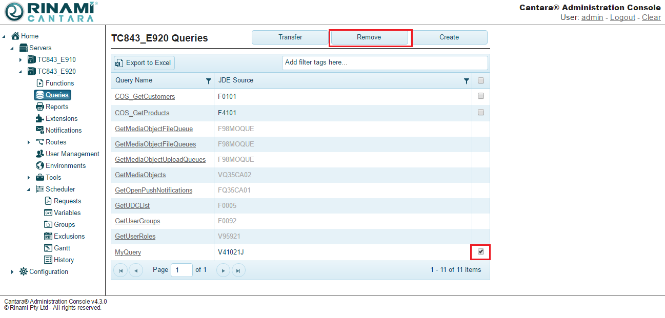 1. Select the Queries node in the navigation panel. A list of all the queries that are available in the Cantara Server system is displayed.