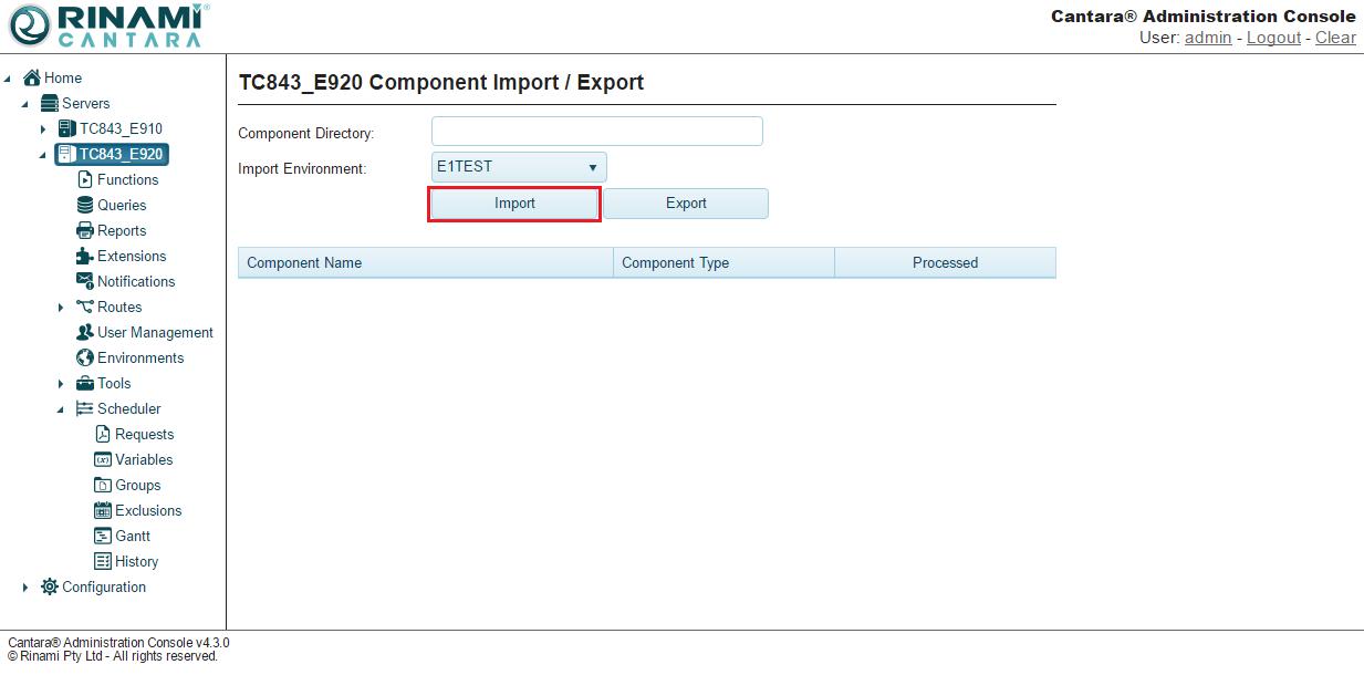 Click the Import button to process the components. The status of each component will be displayed in the processed field.