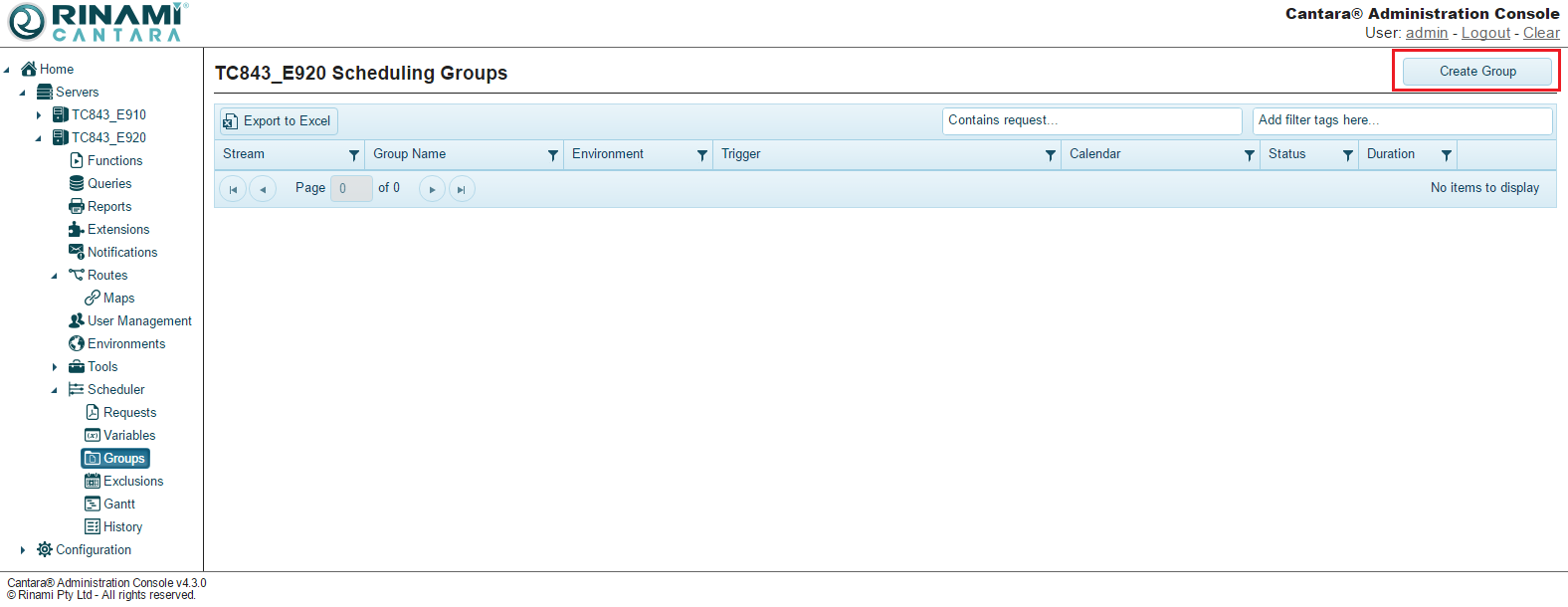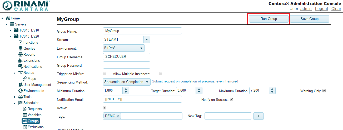 - From the edit group screen click the Run Group button, this will submit the group to the schedular regardless of its trigger settings.