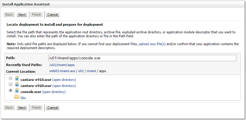 Browse to the Cantara Administration Console application install path as shown in the following image: