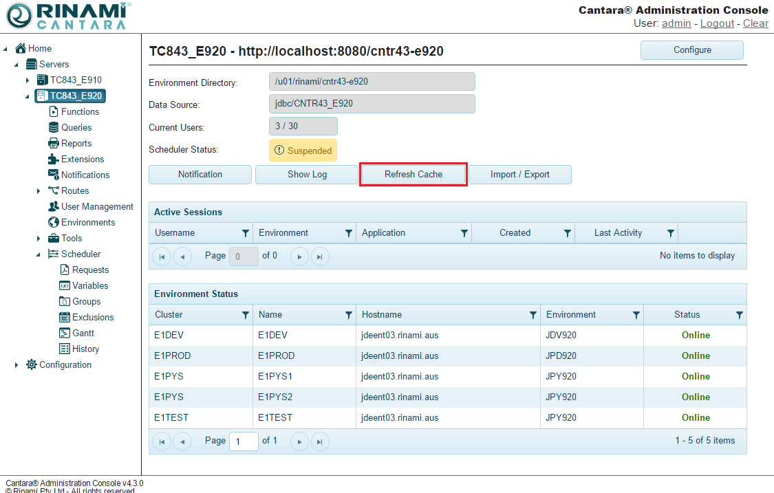Edits and deletions you make to a single server in a clustered environment are not immediately pushed to the other servers. If you require the changes to be immediate you must use the Refresh Cache feature to reflect these updates on the other servers.