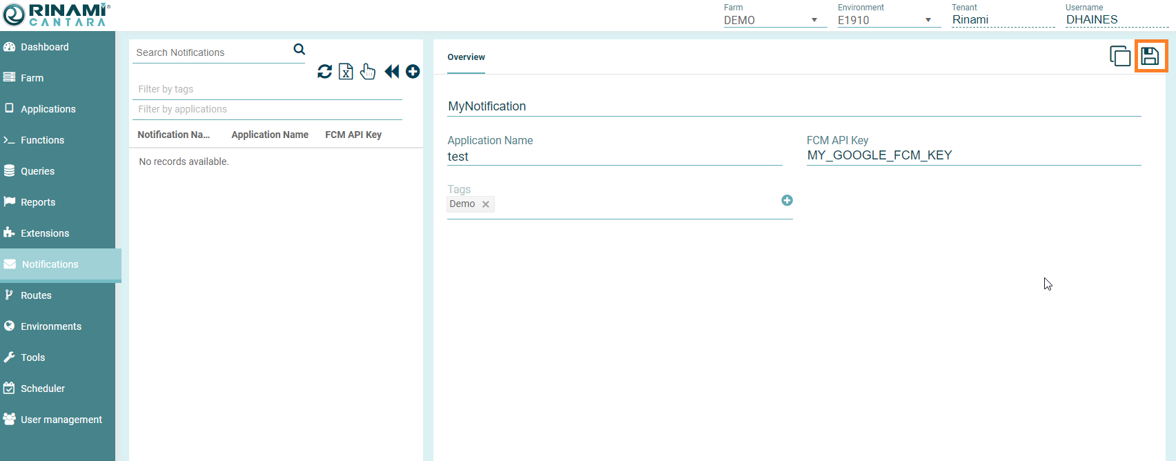 Cantara push notifications make use of the Google Firebase Cloud Messaging service. You will need to ensure that this is configured correctly prior to this feature being configured.