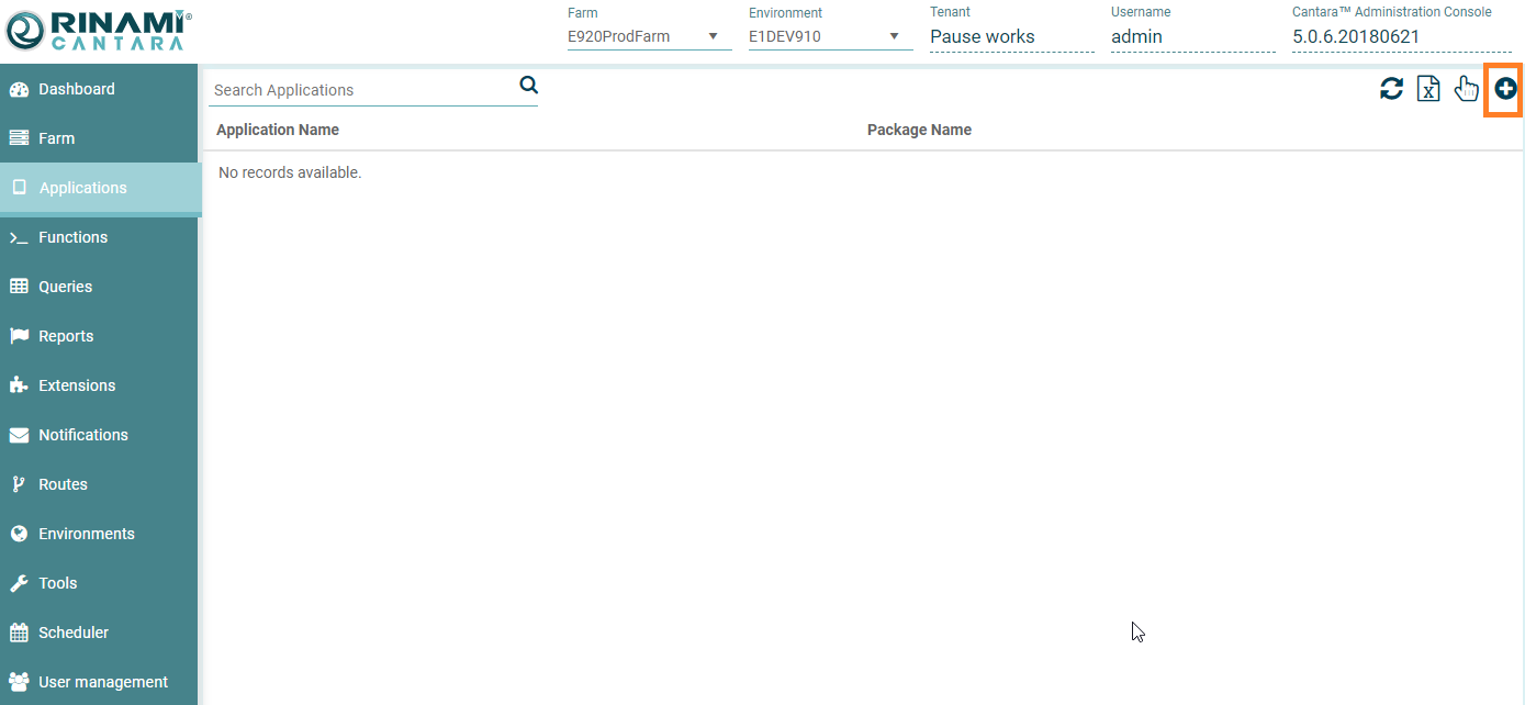 Select the Applications node in the navigation panel. A list of available applications are displayed