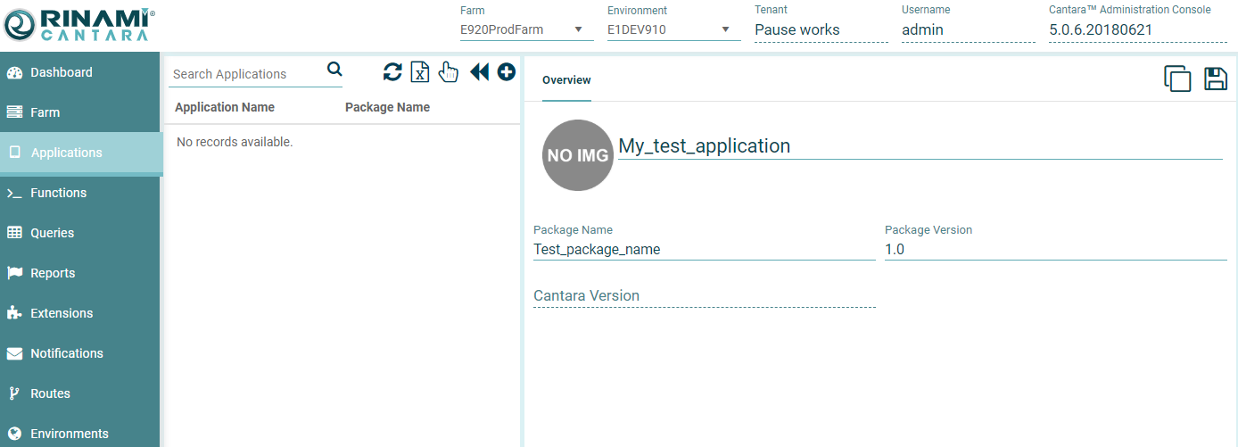 Image clicking the "NO IMG" icon will allow you to add an icon for the application to be saved. This image is displayed in the main dashboard of Cantara when the application is logged in under the Current Users section.