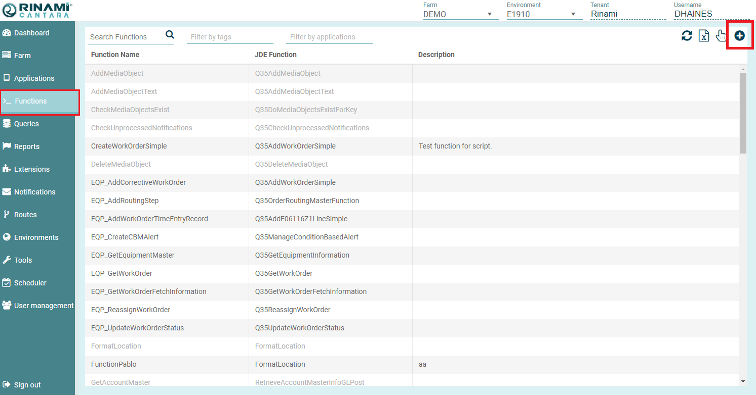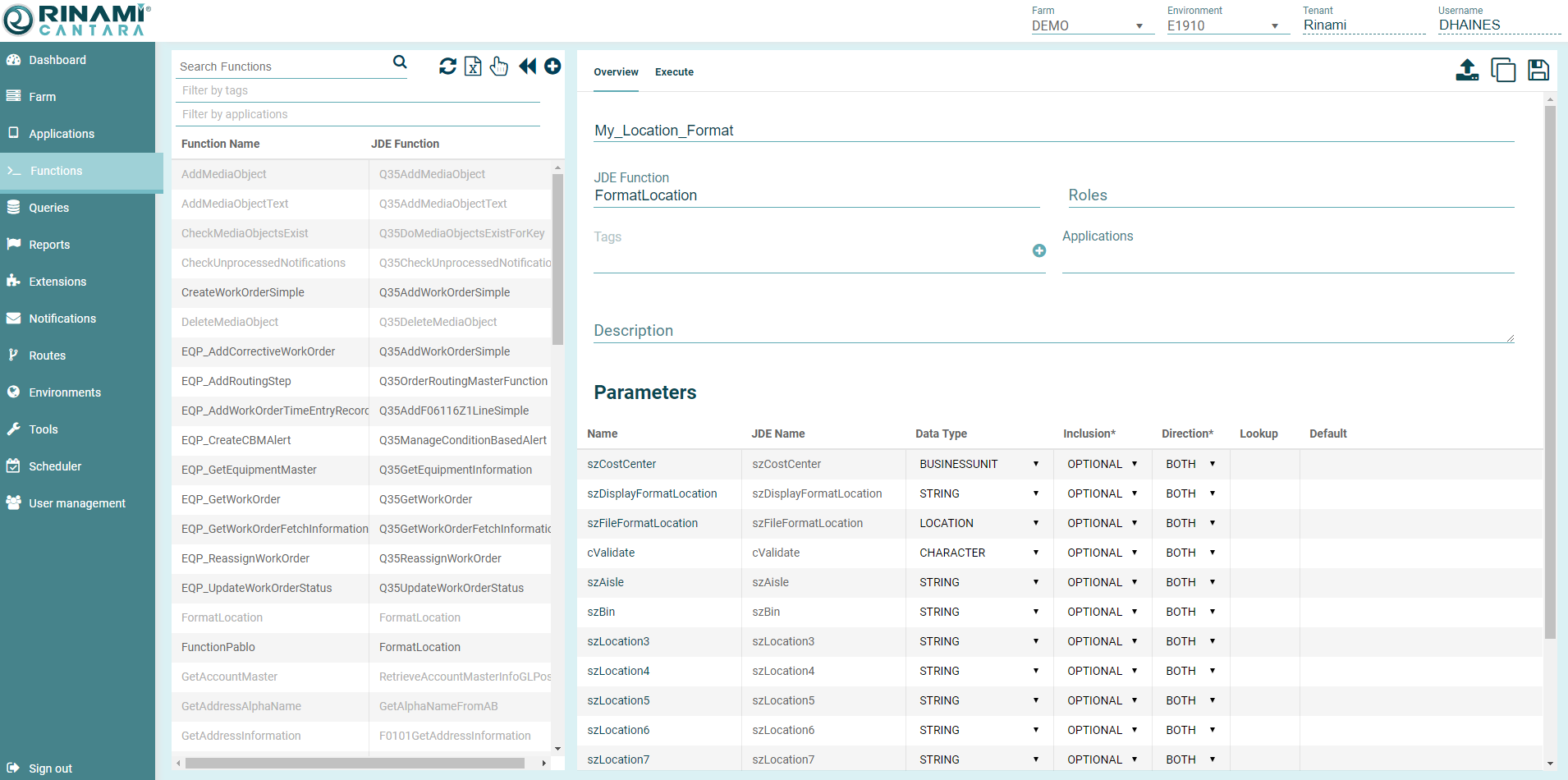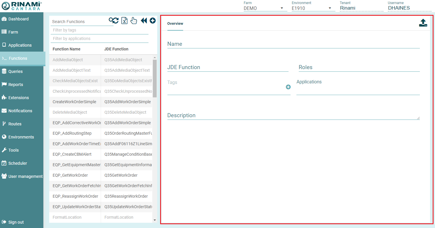 - The function parameters are now retrieved from JDE with the Parameters displayed at the bottom of the pane.