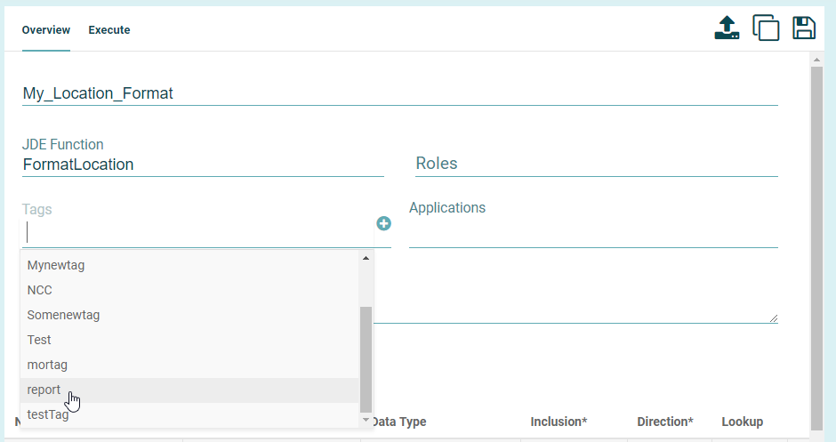 - You can add Tags to your function to assist with management of component definitions. You can select from the existing tags by clicking into the blank area underneath "Tags"