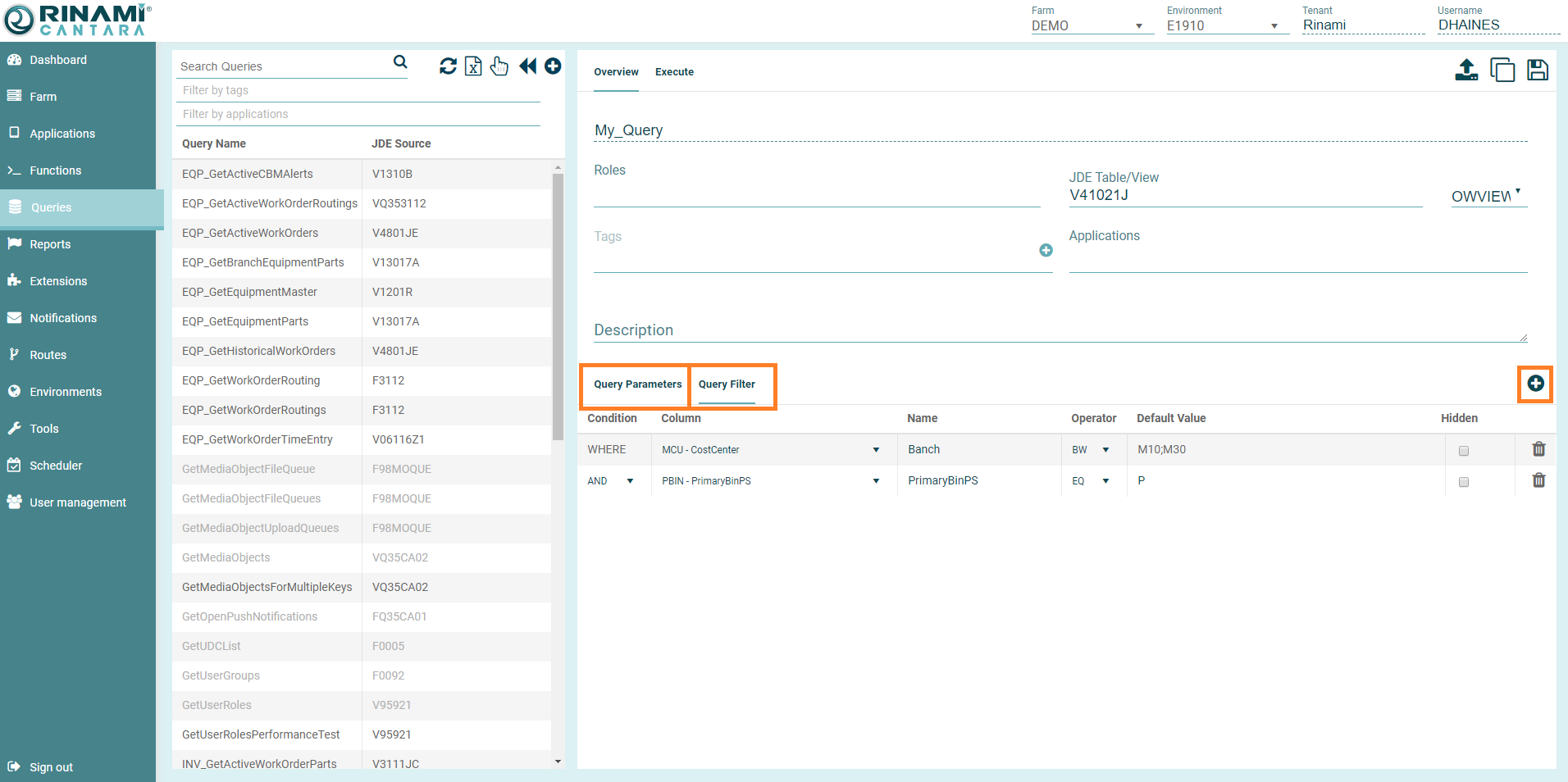 If you need to create multiple queries definitions for the same JD Edwards table or business view, press the Duplicate Query button
