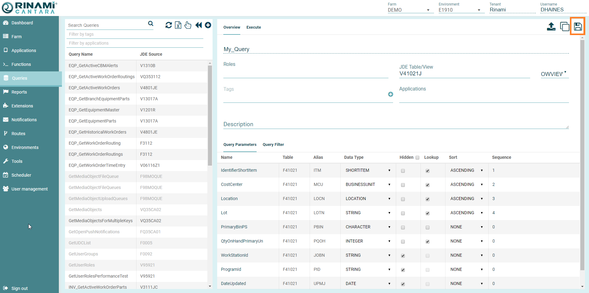 - Click the Save button in the top right. The query definition is saved and is added to the list of queries in the navigation panel.