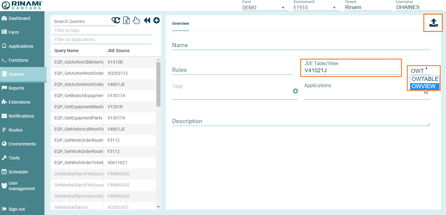 - Enter the JDE Table/View.