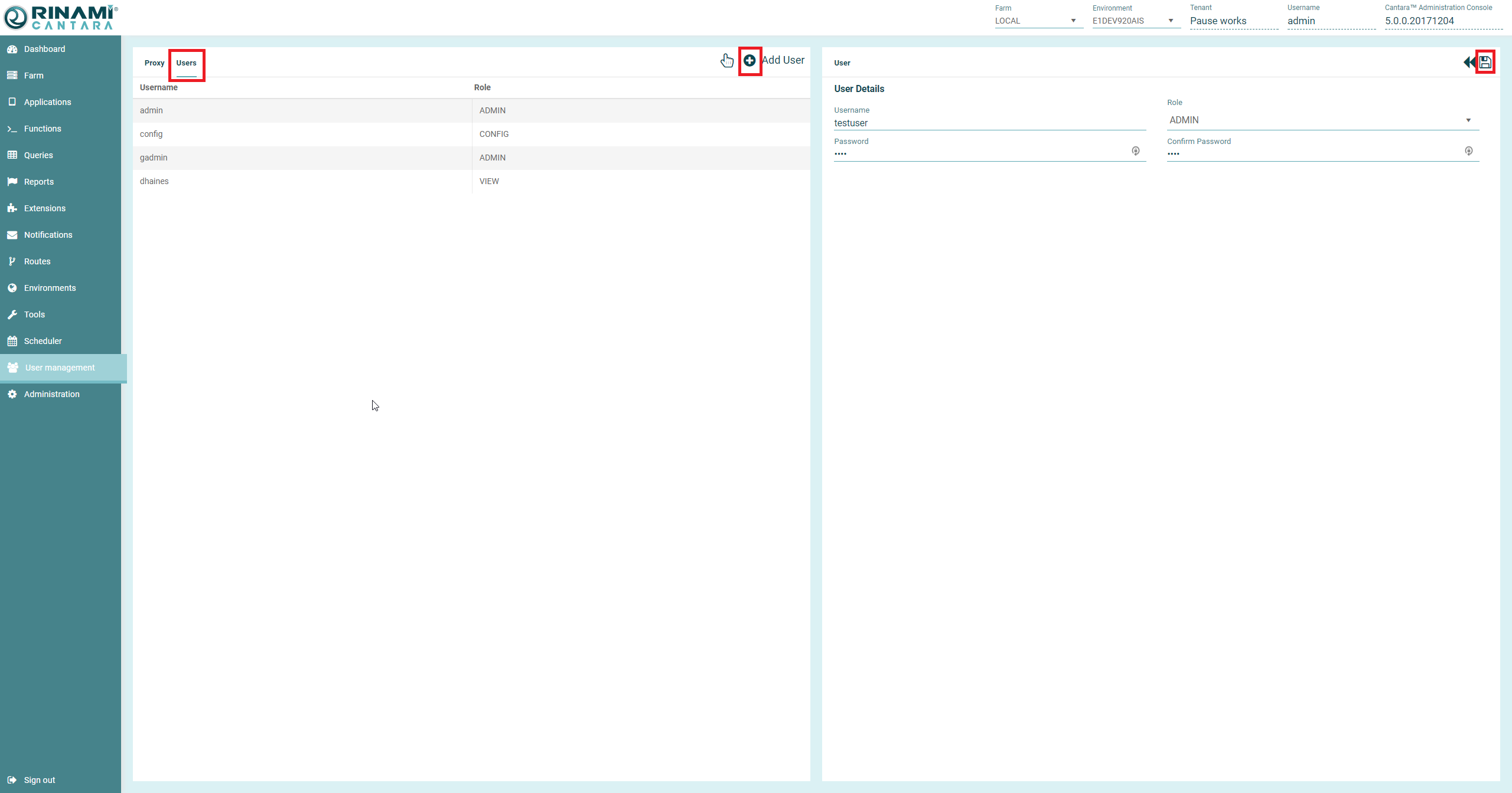 1. Select the User Management node in the navigation panel, and select Users
