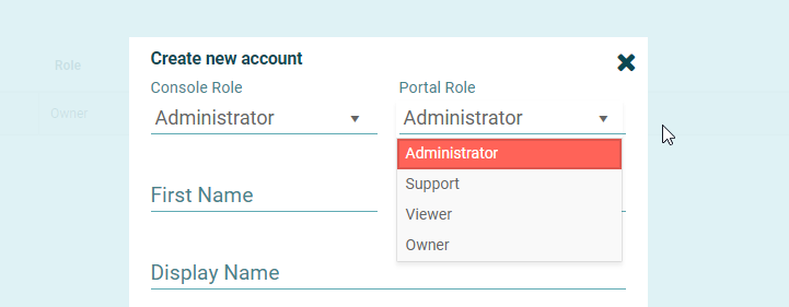 None No access to the Cantara Console - Portal Account Only Portal Role Access Level Granted Administrator Purchase Licenses, Create Accounts, Download Cantara Components Support View Only, Ability to view the Dashboard, Download Cantara Components, View/Raise Support Tickets Viewer View Only Owner All Administrator Functions + Ability to update Customer account details