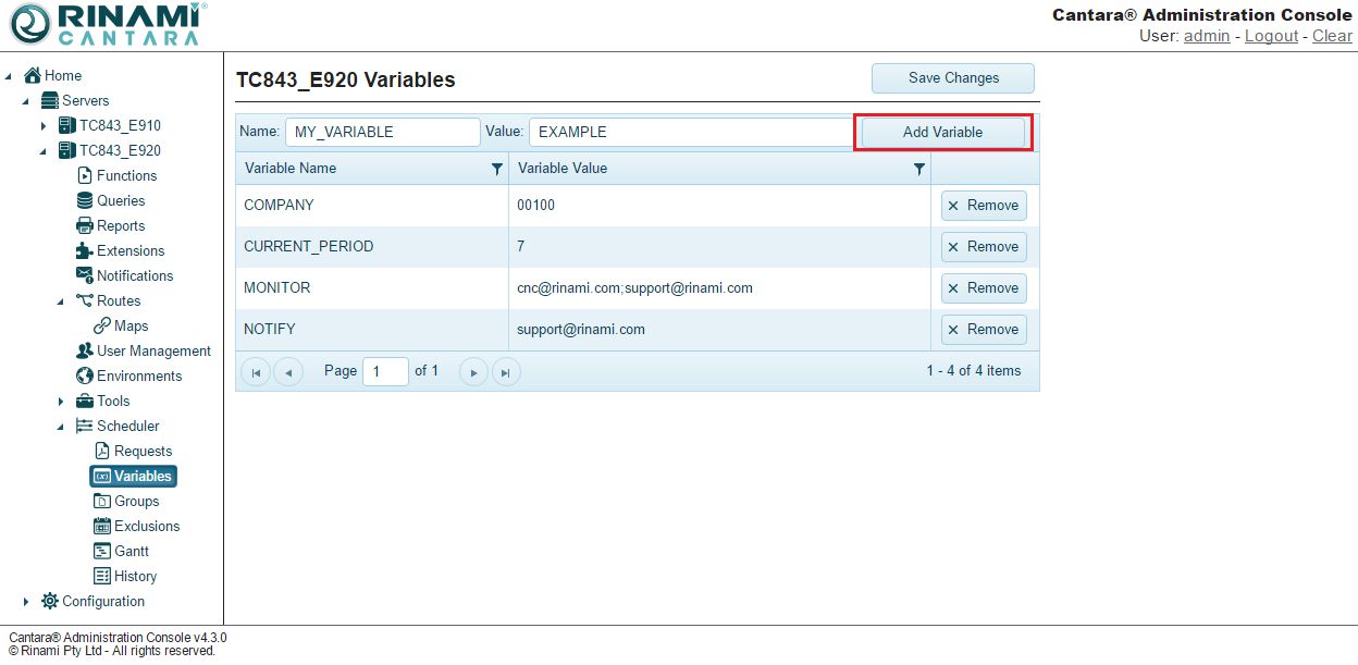 You can add, edit and delete variables that are associated with a request. Once defined, you can use a variable in a request.