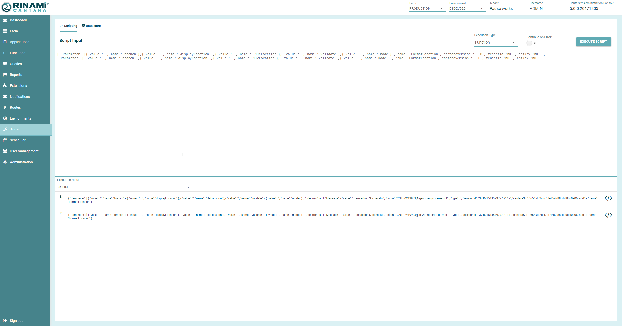 You can execute Functions, Queries or Report on Scripting screen.