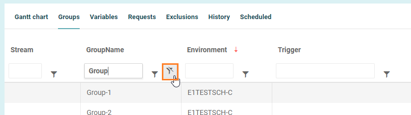 - Once a filter is applied a second grey filter icon will appear, To clear the filter, click the Grey pin icon.