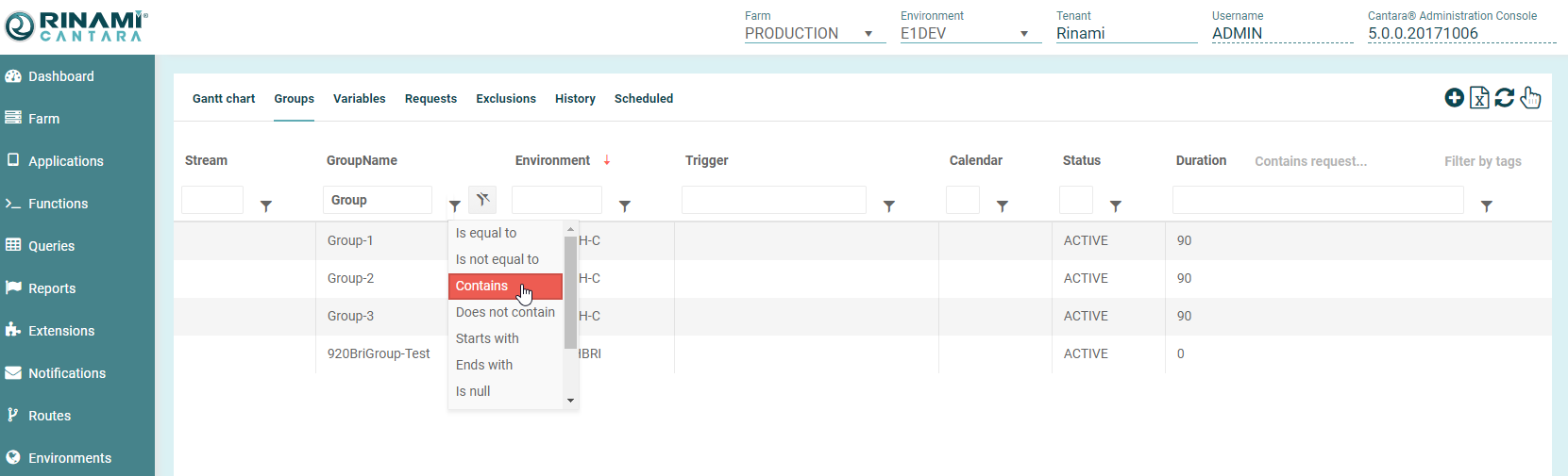 - If you wish to change the criteria to a value other than "contains", click on the pin icon.