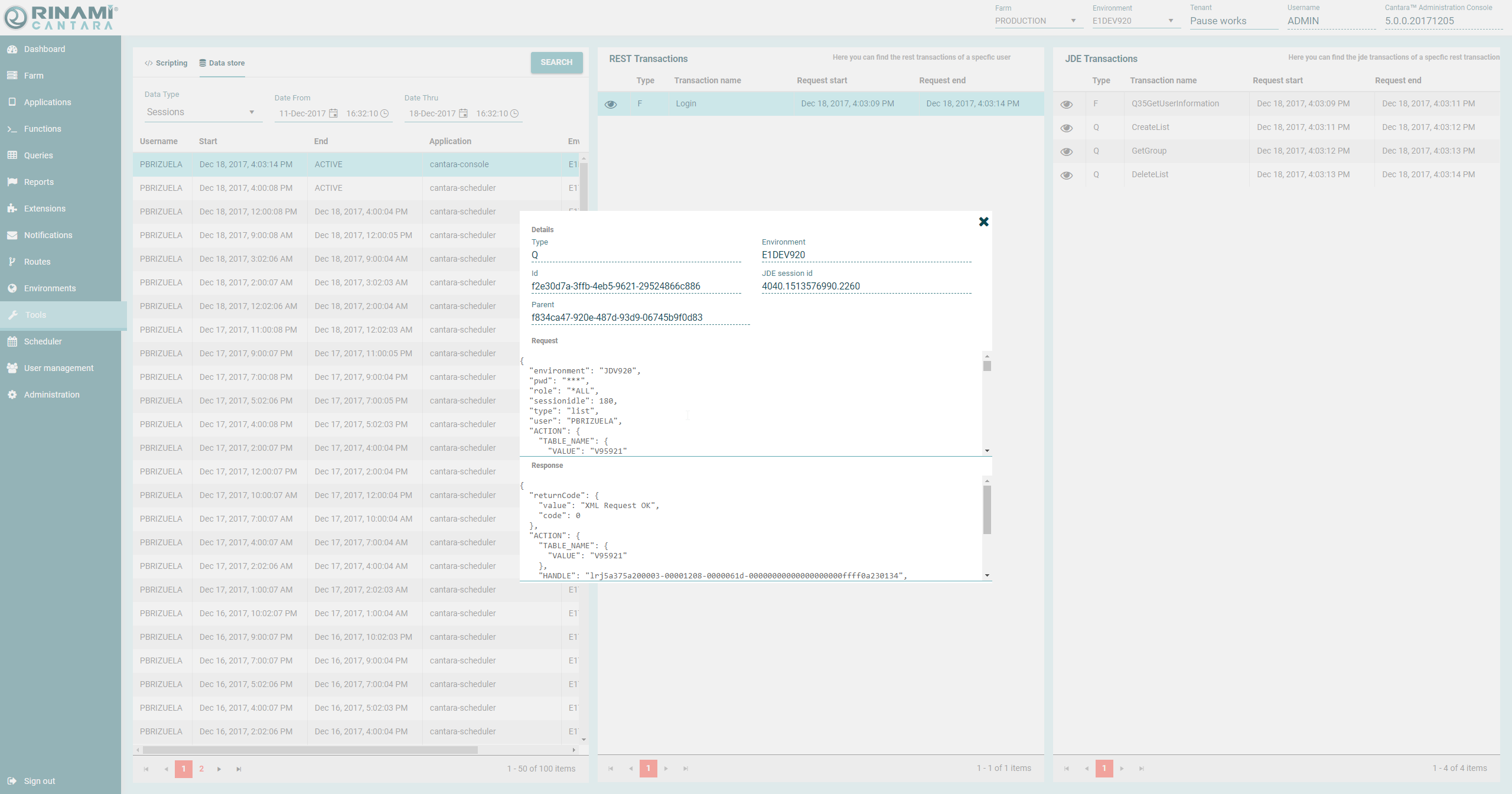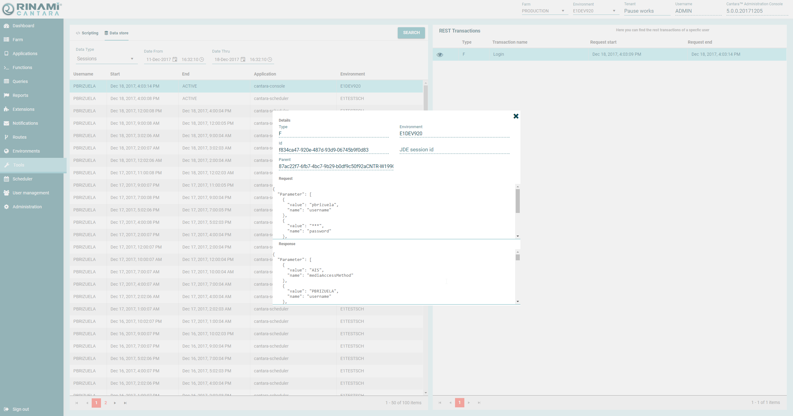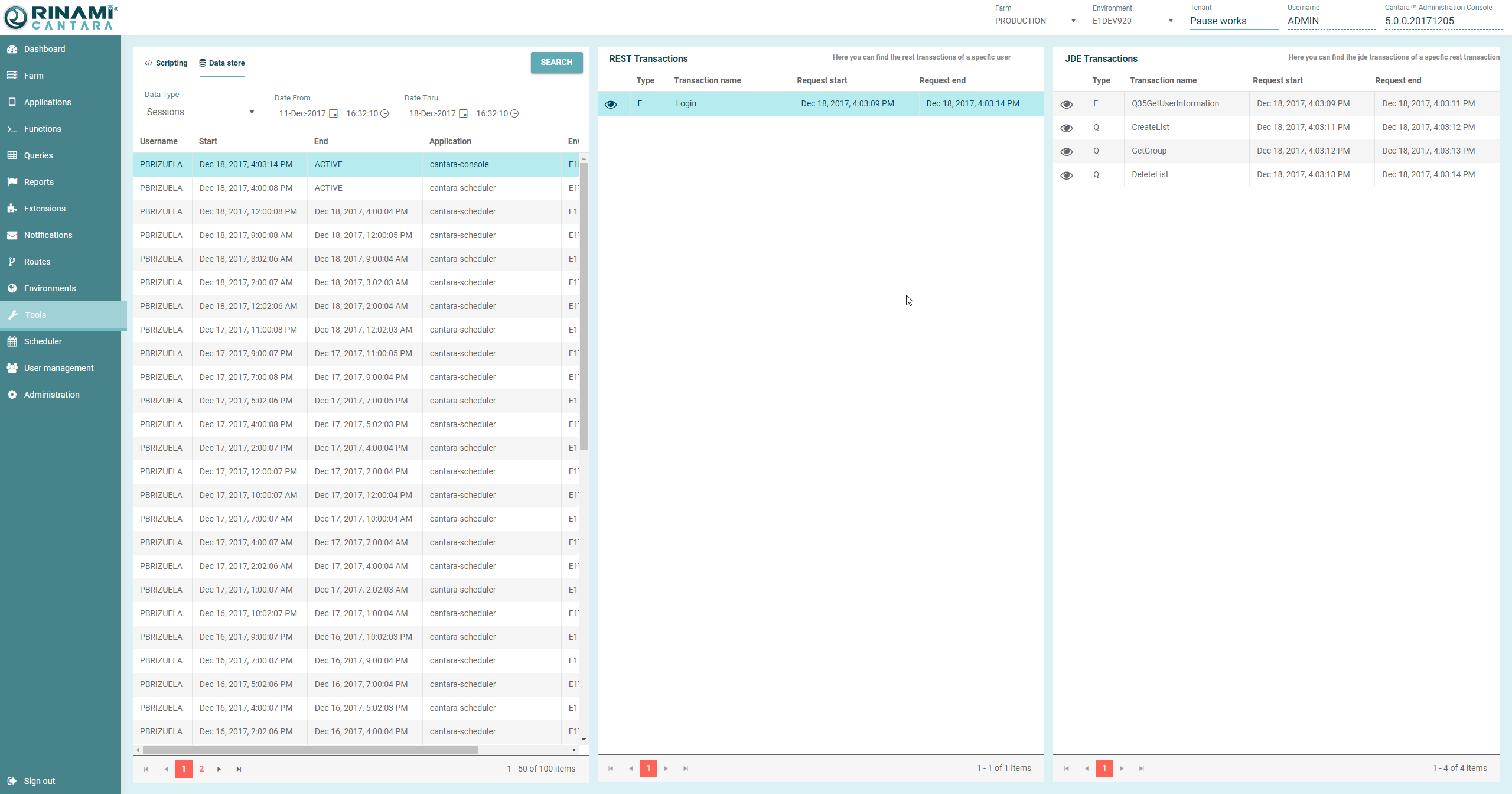 Click Data store option, by default you will be able to see latest week sessions. If you select one of them, you will be able to see all REST transactions that were executed by that session.