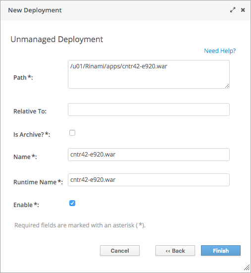 Click Finish, and the application should be deployed and enabled on your server.