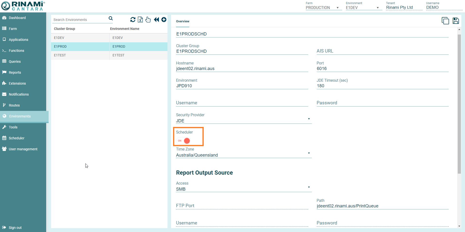 Note* Enabling the Scheduler option will disable the standard service environment options and display the scheduler specific options.