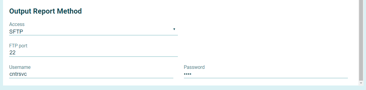 - Report Access: Select FTP, SFTP or SMB if you want to enable access to the output from scheduled reports.