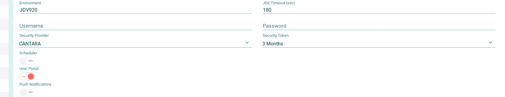 Push Notifications: If checked Cantara will attempt to process push notifications for this JDE environment.