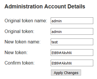To control administration access between components, credentials must be set on each of the access server and assur server components. This is accessed through the Change Server Token link in the top right of each component landing page. The default credentials are admin/admin.